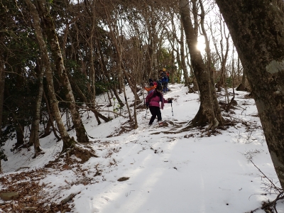 | 古処山方面へ | 雪がフカフカで気持ちよい | 再び展望所へ戻りここから下山開始(12:47) | |