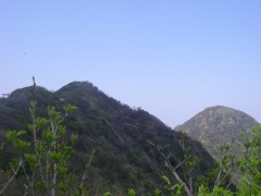 | 国見分かれ辺りから見た普賢岳山頂 | 鎖場を楽しむメンバー | 国見岳山頂 |