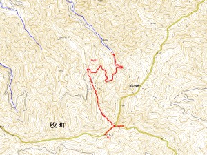 | 林道(通行止め)〜登山口〜牛ノ峠論所跡〜山頂〜牛ノ峠論所跡〜登山口〜林道(通行止め) | ||