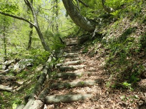 | 徐々に勾配がきつくなる | 木段が続く | |