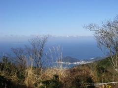 <コース詳細> 深坂峠の登山口より尾根を歩きます。途中で直登と巻き道の分岐が何度かあります。第○分岐点と書かれた標識をいくつか見ます。上りつめて稜線に出ると中国自然歩道にぶつかります。左に行くと鋤尖山方面です。右に進路をとり階段を上がると竜王山山頂に飛び出ます。山頂は360度の展望で響灘の素晴らしい景色が堪能できます。一息ついたら反対側(北方向)から下ります。すぐにY字路となり標識通り、右方向は吉見峠へと進みます。ここより急斜面の下りが続きます。下りきると舗装道に出ます。吉見峠です。反対側に鬼ケ城への登山口標識があります。急斜面を必死に下ってほっとしたところですが、今度は急斜面を上ります。直登なので厳しい上りです。最初のピークは汐見岩です。竜王山の山容を味わえます。再び下って上り、二つ目のピークには広瀬コブとあります。展望はありません。しばらく行くと再び下り、内日梅園との分岐を見て長い上り返しを喘ぐと開けた山頂に飛び出ます。鬼ケ城も竜王山と同じで鐘があります。今回はここで昼食です。ゆっくりと休んだら下山です。北側より石印寺の登山口を目指し下ります。すぐに鬼小屋があって平らになると狩音山との分岐です。直角に左折し、ジグザクの道をひたすら下ると登山届の箱のある駐車場に着きます。 <コースタイム> 深坂峠登山口-(70分)-竜王山-(50分)-吉見峠-(40分)-汐見岩-(20分)-広瀬コブ-(50分)-鬼ケ城-(20分)-狩音山分岐−(40分)−石印寺登山口 ※休憩時間は含まれていません。全行程で約5時間でした。 <温泉> 温泉はもちろん吉見温泉センターです。大人600円です。入口で蓋井島の漁師さんが天然取り立てのナマコやアワビを売っていました。 |